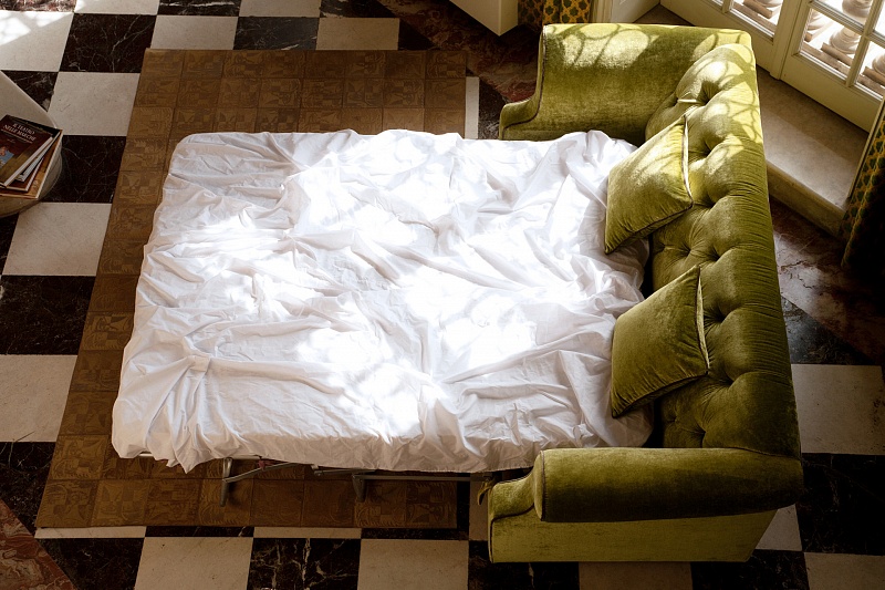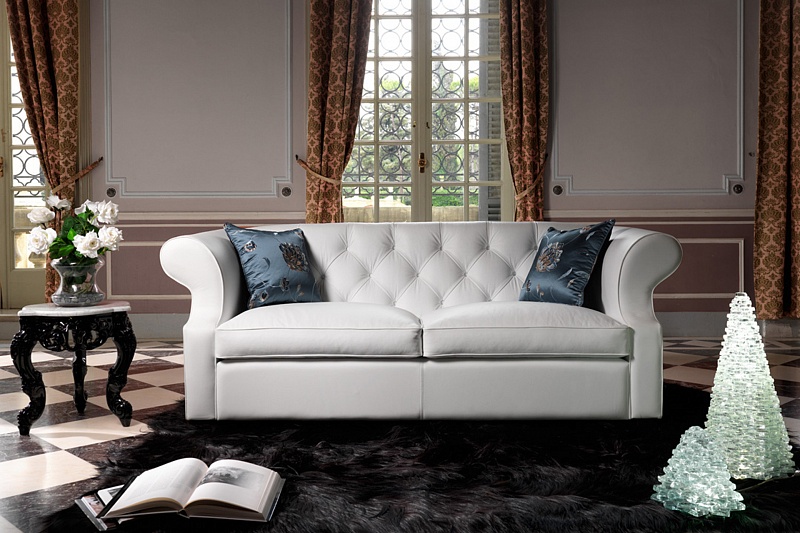 Строгий и элегантный силуэт дивана, выполненного в классическом стиле, украсит гостиную или кабинет. Доступны двух-, трех- и четырехместные модели. Диван раскладной, элементы частично съемные, может быть использован как кровать. Каркас и ножки из твердой древесины тополя или сосны. Сетка стальная сварная в 2 сложения, наполнитель - ППУ различной плотности. Матрас высотой 12 см в чехле из хлопкового холста. Обивка кожаная или текстильная из ассортимента компании. Контур дивана отделан строчкой или контрастным кантом, спинка украшена стежкой капитоне.