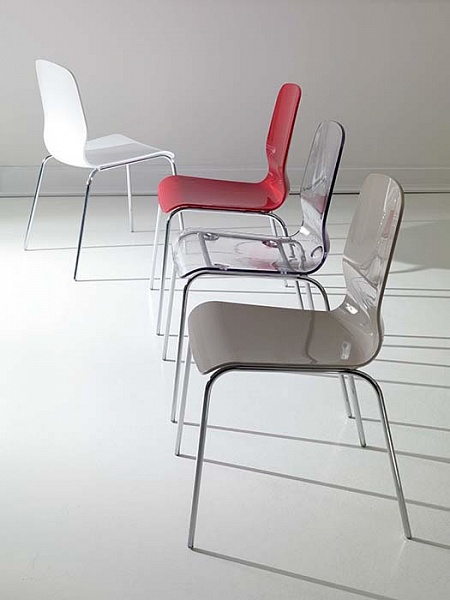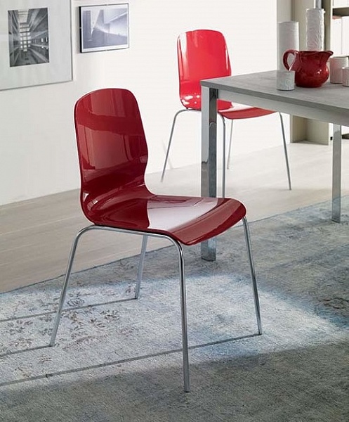 Стул со структурой из металла, сидение из поликарбоната.
