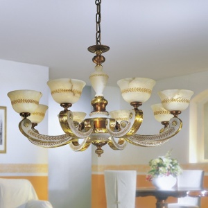 2268/8 -003 RUST FINISH CHANDELIER W/ALABASTER 8XMAX40W E14