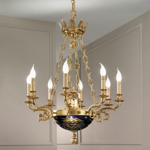 236/8+2 -079 SHADED GOLD PLATED CHANDELIER 8X60WE14+2x40WE14