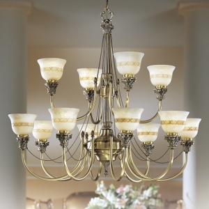 27089/8+4 -008 ANT.BRASS FINISH CH. W/ALABASTER 12XMAX40W E14