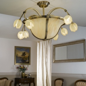 1394/8+4SF -008 ANTIQUE BRASS CHANDELIER WGLASS 12MAX60W G9